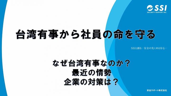 HOME > SSIニュースリリース > トピックス > 【動画公開】台湾有事から社員の命を守る